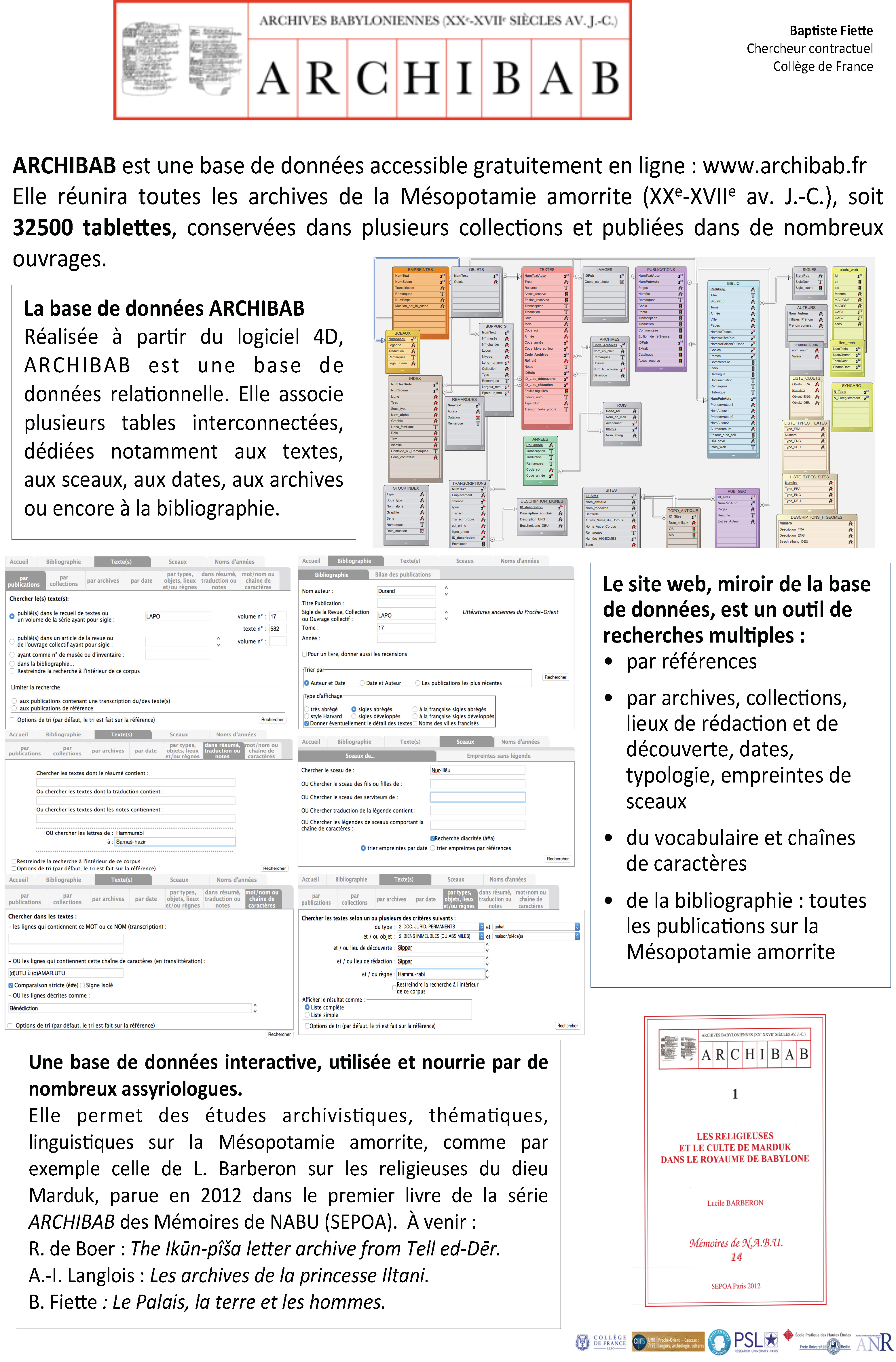 La 1ère journée d’études en humanités numériques de l’EPHE (12/10/2016) fut l’occasion de présenter les divers projets impliquant les humanités numériques de l’équipe « Mondes mésopotamiens » : Archibab, Digibarchi, Textelsem et Lea.
